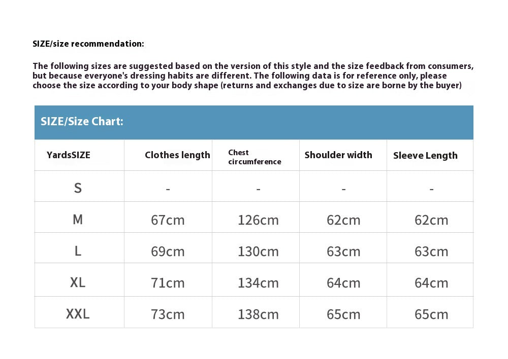 1. Asian sizes are 1 to 2 sizes smaller than European and American people. Choose the larger size if your size between two sizes. Please allow 2-3cm differences due to manual measurement. 2. Please check the size chart carefully before you buy the item, if you don't know how to choose size, please contact our customer service. 3.As you know, the different computers display colors differently, the color of the actual item may vary slightly from the following images.